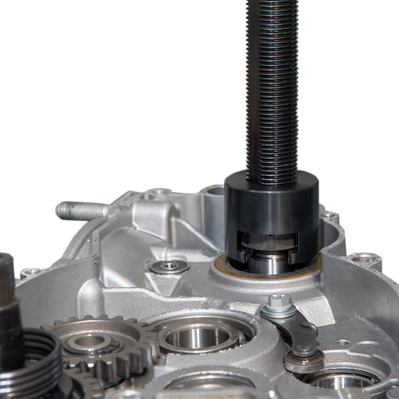Caracteristicas: Precision tool used to install press-in crankshafts in an engine case Time-saving method maintains crankshaft true during installation Universal steel nut adapter works on virtually all crankshafts 25 mm and 40 mm face plate adapters ensure the crankshaft is pulled perfectly straight into bearings Reversible pull stud Eliminates the need for a shop press to install a crankshaft Machined brass thrust washer for extra durability