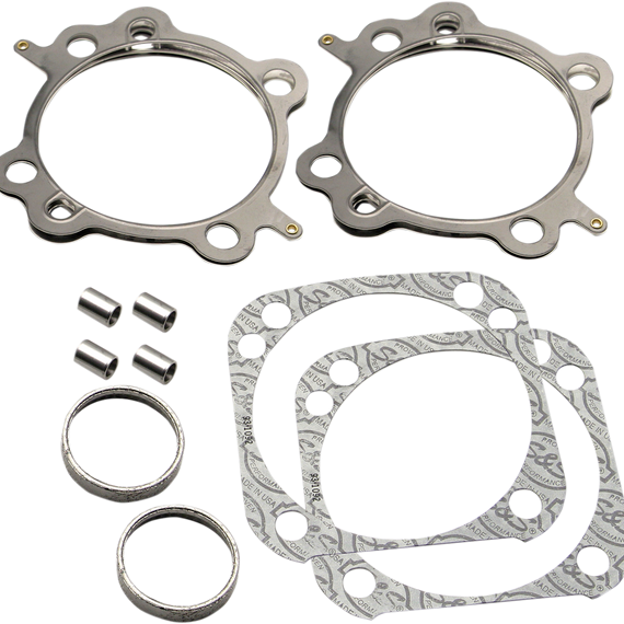 Caracteristicas: Includes set of head and base gaskets, exhaust gaskets and O-rings Layered steel head gaskets Made in the U.S.A. Kit does not include rocker box gaskets; must be purchased separately.