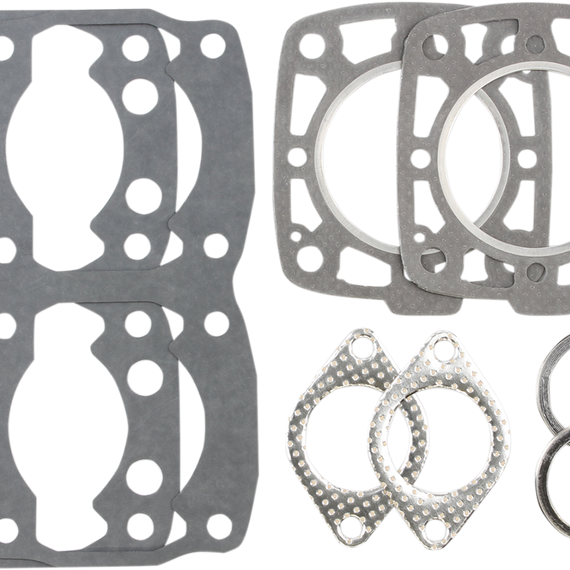 Caracteristicas: Top end gasket kits include correct base, head gasket and cylinder O-rings as well as other top end specific O-rings or seals needed for R&R of top end MLS head gaskets promote an even torque load across the gasket sealing surface, providing less bore distortion and better piston ring seal for more power 4-stroke head gaskets are made to perform on today’s highest-output 4-stroke naturally aspirated and boosted machines, utilizing a multi-layered steel design with the outer layers being embossed and coated with a Viton rubber coating; these head gaskets are designed to meet the demands of today's high-horsepower, high-cylinder-pressure engines EST (Extreme Sealing Technology) gasket kits include embossed stainless steel head, base and rocker gaskets covered with a proprietary rubber material Head gasket material allows heat to be drawn away from the combustion ring and dissipated evenly across the gasket surface to eliminate hot spots and gasket failure Made in the U.S.A.