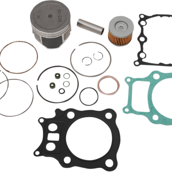 • Includes pistons, rings, pins, clips, needle bearings, head and base gaskets and intake and exhaust gaskets and oil filter for 4-stroke models