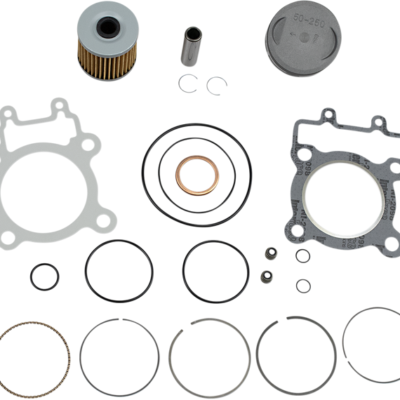 • Includes pistons, rings, pins, clips, needle bearings, head and base gaskets and intake and exhaust gaskets and oil filter for 4-stroke models