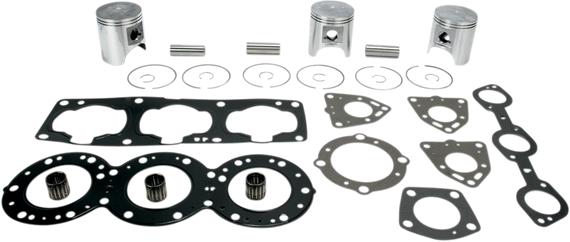 • Include pistons, rings, pins, clips, racing needle bearings, head and base gaskets, intake and exhaust gaskets
