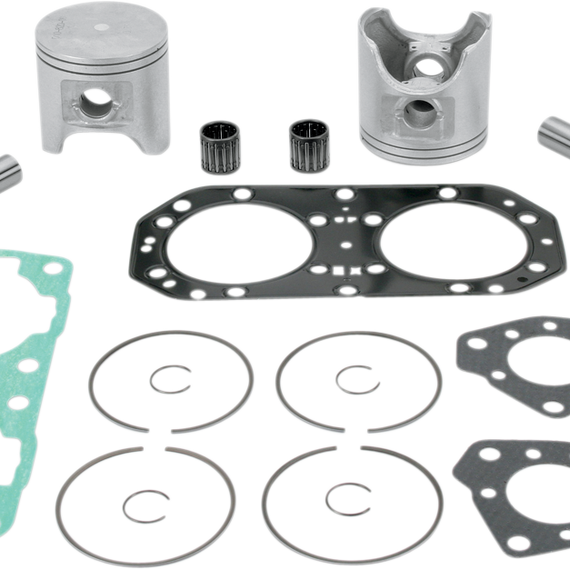 • Include pistons, rings, pins, clips, racing needle bearings, head and base gaskets, intake and exhaust gaskets