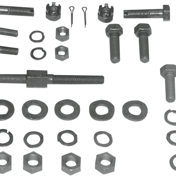 • Includes two bolts, two bolts, two bolts, two nuts, two nuts, four nuts, two cotter pins, seven lock washers, one bolt, one adjusting screw and five washers