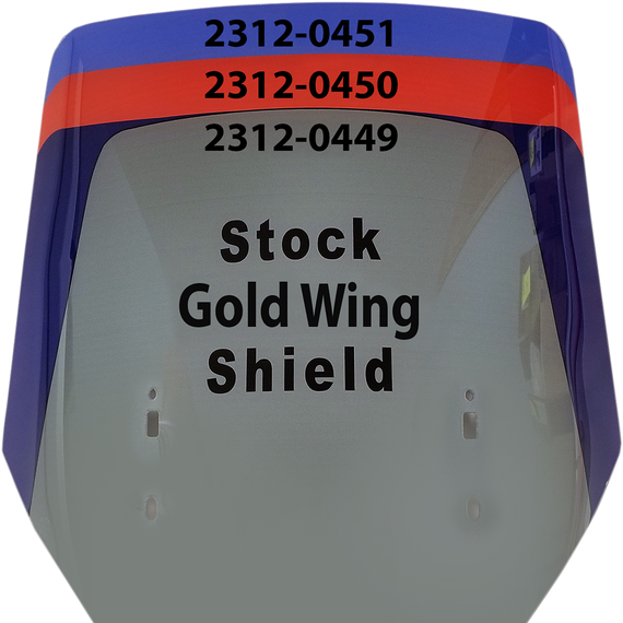Caracteristicas: Utilize stock mounts, yet provides greater protection than the stock windshield Feature black fairing brackets on each side for strength and security Wrap around mirrors and is taller than the OEM shields for added protection Silk-screened base similar to stock; double-edge routed for a smooth border Fit with Wingleader® windshield trim or with OEM trim on Interstate, Aspencade, SE-i and Limited Edition 84-87 models Made in the U.S.A.