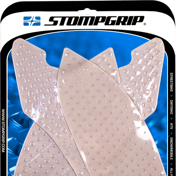 Caracteristicas: Make gripping your ride incredibly easy for increased bike control with more contact between bike and rider Provides more lower body grip and less upper body stress Ultra-clear proprietary elastomer material means paint and graphic remain visible through traction pads Non-abrasive material; designed to wear down and be replaced like a tire Will not wear down leathers as compared to grip tape Pre-molded with rounded edges that resist peeling Super-strong 3M™ peel-and-stick adhesive Made in the U.S.A.