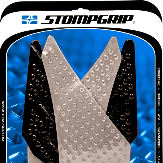 Caracteristicas: Make gripping your ride incredibly easy for increased bike control with more contact between bike and rider Provides more lower body grip and less upper body stress Ultra-clear proprietary elastomer material means paint and graphic remain visible through traction pads Non-abrasive material; designed to wear down and be replaced like a tire Will not wear down leathers as compared to grip tape Pre-molded with rounded edges that resist peeling Super-strong 3M™ peel-and-stick adhesive Made in the U.S.A.