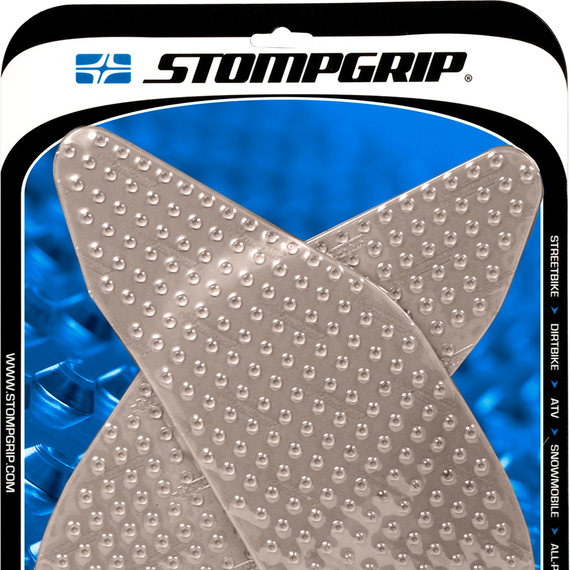 Caracteristicas: Make gripping your ride incredibly easy for increased bike control with more contact between bike and rider Provides more lower body grip and less upper body stress Ultra-clear proprietary elastomer material means paint and graphic remain visible through traction pads Non-abrasive material; designed to wear down and be replaced like a tire Will not wear down leathers as compared to grip tape Pre-molded with rounded edges that resist peeling Super-strong 3M™ peel-and-stick adhesive Made in the U.S.A.