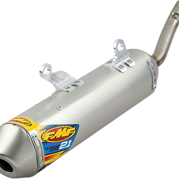 Caracteristicas: The straight through design of the spark arrestor canister and the performance flow stainless steel end cap ensures strength, durability and most importantly, track and trail proven unrestricted power The 2.1 utilizes a shape inspired by the 4.1 system Utilizes exclusive FMF "Turbine Dampening System" U.S. Forest Service legal status