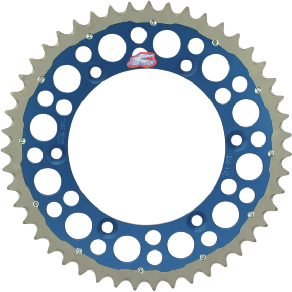 Caracteristicas: Inner ring is the same high strength Ultralight™ 7075 T-6 aluminum used for the standard Renthal sprocket Outer ring is electro-less nickel coated steel for ultimate durability and is designed with the minimum amount of material to keep weight down The outer ring is expanded at 200°C and then fitted over the inner; this interference fit combined with the wave pattern ensures a permanent bond for the life of the chainwheel The flat socket head screws add additional strength to the chainwheel during side impacts and eliminates contact with the chain guide Self cleaning mud grooves between each tooth prevent dirt build upand reduce chainwheel wear and weight Will outlast a standard all aluminum sprocket by 3 times, yet is much lighter than an all steel rear sprocket