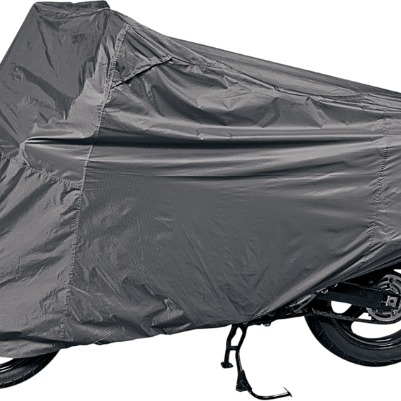 Caracteristicas: Small, compact design is ideal for longer rides; stores easily anywhere Lightweight rip-stop polyester fabric construction for enhanced tear and abrasion resistance Combined UV and water-repellent coating provides protection from dirt, pollution and harsh sunlight; two vent flaps expel moisture Sewn-in storage bag on the cover's interior is a place for storing gloves, sunglasses and other small items Features full-perimeter elastic on bottom, underbelly straps for a secure fit, soft interior lining to protect windshields and lockable grommets for added security