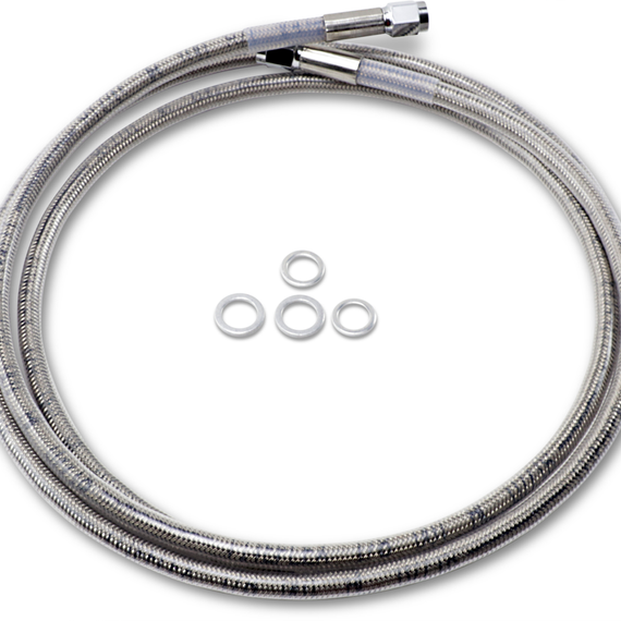 Caracteristicas: Top-quality clear-coated stainless steel-braided or black vinyl-coated stainless steel/braided brake lines, banjo bolts, brake line fittings and crush washers provide consistent, reliable performance Banjo bolts and fittings are chrome-plated steel and sold separately Feature chrome-plated AN-3 ends Made in the U.S.A. 04-16 XL models use metric 10mm x 1.25" and 12mm x 1.50" banjo bolts, washers and fittings. All Big Twin (except 08-16 Dressers) and pre-04 XL models use standard 3/8" and 7/16" banjo bolts, washers and fittings. Fittings and washers listed as 3/8"/10mm can be used in either application.