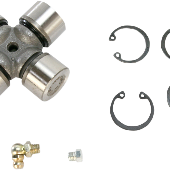 Caracteristicas: U-Joints are cold forged from SCM-415 steel, precision ground journals are case hardened to HRC58-61 Pre-greased with hi-temp Lithium Complex 3 grease, zerk and grease channels in bearing cup evenly distribute grease Kits include cap plug to eliminate grease zerk for low clearance applications Honda yoke assemblies have upgraded cross diameters from 17mm to 19mm and feature stainless steel clamps and hi-quality neoprene rubber boots for long life and abrasion resistance