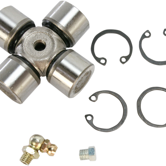 Caracteristicas: U-Joints are cold forged from SCM-415 steel, precision ground journals are case hardened to HRC58-61 Pre-greased with hi-temp Lithium Complex 3 grease, zerk and grease channels in bearing cup evenly distribute grease Kits include cap plug to eliminate grease zerk for low clearance applications Honda yoke assemblies have upgraded cross diameters from 17mm to 19mm and feature stainless steel clamps and hi-quality neoprene rubber boots for long life and abrasion resistance