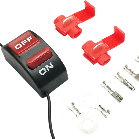 Caracteristicas: Compact Flat mount switch, includes all necessary wiring accessories, and a double stick adhesive tape for mounting Black housing and red button Universal for use with almost any accessory Mounts on dash or interior panels