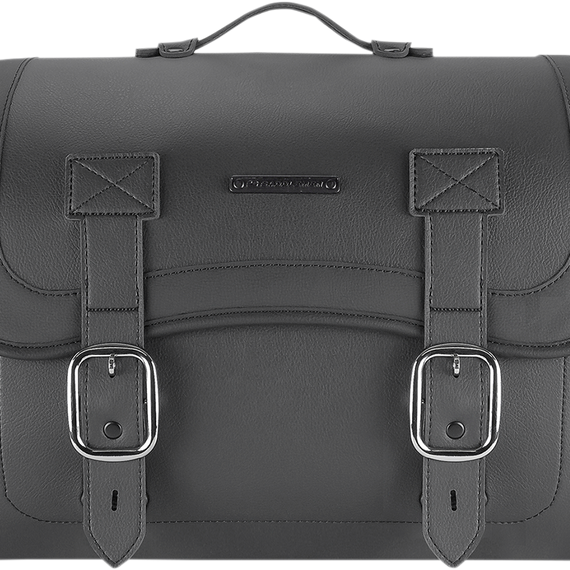 Caracteristicas: Sleek-styled tail bag featuring straps and large chromed buckles Lockable, quick-release buckles hidden below large chrome buckles Made of rugged leather-grain, marine grade vinyl and plastic reinforcing panels and plastic reinforcing panels Rigid construction keeps these bags looking good, full or empty Designed for multiple mounting options adaptable to any bike; attaches to sissy bar, rack or atop passenger seat Easy-to-use sissy bar strap; multiple anchor points, including four heavy-duty Black D-rings and several strap slots provided for fast, easy mounting Riveted top handle and removable shoulder strap for convenient transport off the bike Hat-box style lid with long sides for protection against weather, grime and other elements Two waterproof zippered and flap-covered side pockets provide extra storage Hanging internal mesh pocket provides separate storage inside bag and helps organize contents Easy-open lid provides convenient access