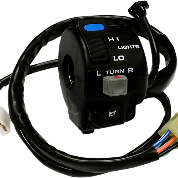 Caracteristicas: Turn signal functions as right, left and center push cancellation Headlight function for high-low beams Switch fits 7/8" handlebars Includes horn button 15.5” wire length (39.37 cm) with 9-pin wire connector and 6.5” extension Maximum voltage is 10-14 volts, maximum amperage is 6 amps Measures: 45mm x 64mm x 55mm DOT compliant