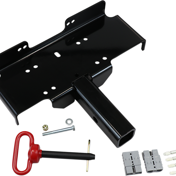 Caracteristicas: Universal receiver mounted winch cradle fits almost any ATV or UTV with a 2" or 1-1/4" receiver hitch Mount any 2 or 4 bolt pattern winch up to 4500 lbs Includes hardware and mounting pin/clip Formed steel construction has built in handles and features a durable powder coat finish Quick disconnect plugs are included for a truly plug and play set up Made in the U.S.A.