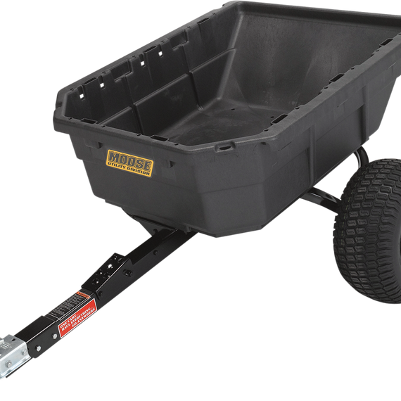 Caracteristicas: 12.5 cu. ft. heaped capacity 1,250 lb. load capacity Structural foam cart body will not rust Pass-through undercarriage provides a full 12" of ground clearance Pivoting hitch allows cart to adjust to uneven terrain Full 60° dump angle Cart body swivels to easily dump load anywhere within a 100° radius Works with a 1-7/8" ball Foot pedal activates dump mechanism ATV/UTV/tractor compatible Tires - 16" x 7.5" x 8" Overall length - 76.26" L x 46.77" W x 31.12” H Box length - 48" L x 40" W x 14.5" H Assembly required Shipped via prepaid truck Made in the U.S.A. Not for use on public roads.
