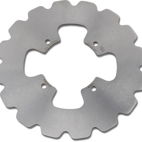 Caracteristicas: Heat-treated carbon steel brake rotors Steel construction extends rotor and brake pad life by eliminating galling Rotors come with or without scraper holes (according to OEM rotor design) A new range of brake rotors for ATV/Quad/Side x Side machines featuring lightweight vee-profiled contours These rotors look great and are self cleaning whilst improving brake performance Made from durable and tough heat treated stainless steel, 100% made in our British manufacturing facility using premium German mill-rolled steel, heat treated and then diamond ground to deliver great braking at less than OEM prices