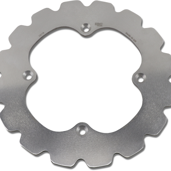 Caracteristicas: Heat-treated carbon steel brake rotors Steel construction extends rotor and brake pad life by eliminating galling Rotors come with or without scraper holes (according to OEM rotor design) A new range of brake rotors for ATV/Quad/Side x Side machines featuring lightweight vee-profiled contours These rotors look great and are self cleaning whilst improving brake performance Made from durable and tough heat treated stainless steel, 100% made in our British manufacturing facility using premium German mill-rolled steel, heat treated and then diamond ground to deliver great braking at less than OEM prices