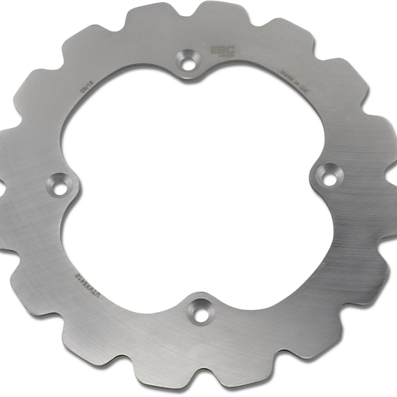Caracteristicas: Heat-treated carbon steel brake rotors Steel construction extends rotor and brake pad life by eliminating galling Rotors come with or without scraper holes (according to OEM rotor design) A new range of brake rotors for ATV/Quad/Side x Side machines featuring lightweight vee-profiled contours These rotors look great and are self cleaning whilst improving brake performance Made from durable and tough heat treated stainless steel, 100% made in our British manufacturing facility using premium German mill-rolled steel, heat treated and then diamond ground to deliver great braking at less than OEM prices