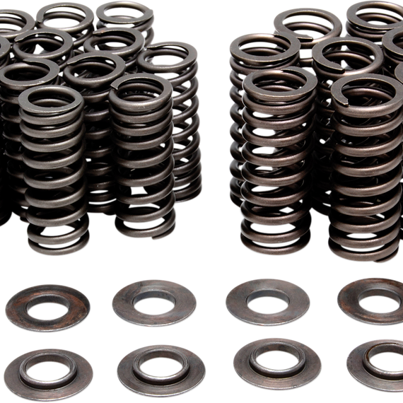 • This kit also includes H.T. Steel basewashers in order to achieve a precision fitment on the large end of our beehive spring which, better controls the lateral motion of the spring, ensuring longer life and less wear on the valvetrain components
