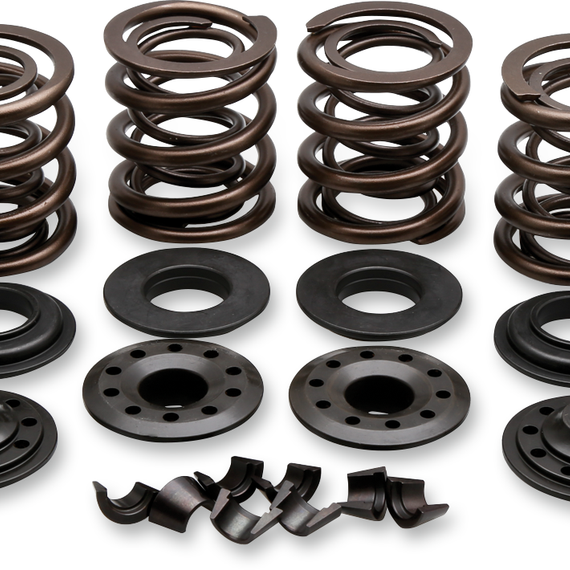 Caracteristicas: OE style replacement kit Features dual super clean chrome silicon springs; heat-treated steel base washers .415" lift Includes steel retainers Made in the U.S.A.
