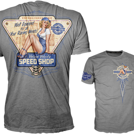 Vintage Velocity Speed Shop T-Shirt - Gray - Medium