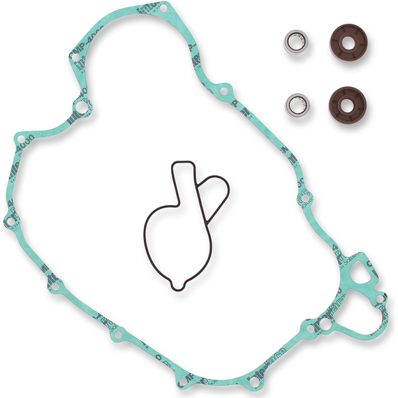 • Typical kit includes the following: bearings where applicable; rubber seals; mechanical water pump seal where applicable; side cover gasket; water pump gasket; snap rings located on water pump shaft and copper drain washers