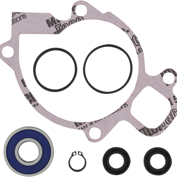 Caracteristicas: Include every gasket, O-ring, bearing and seal required to rebuild a water pump Typical kit includes the following: bearings where applicable; rubber seals; mechanical water pump seal where applicable; side cover gasket; water pump gasket; snap rings located on water pump shaft and copper drain washers