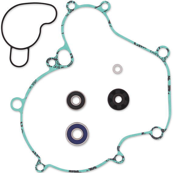 • Typical kit includes the following: bearings where applicable; rubber seals; mechanical water pump seal where applicable; side cover gasket; water pump gasket; snap rings located on water pump shaft and copper drain washers