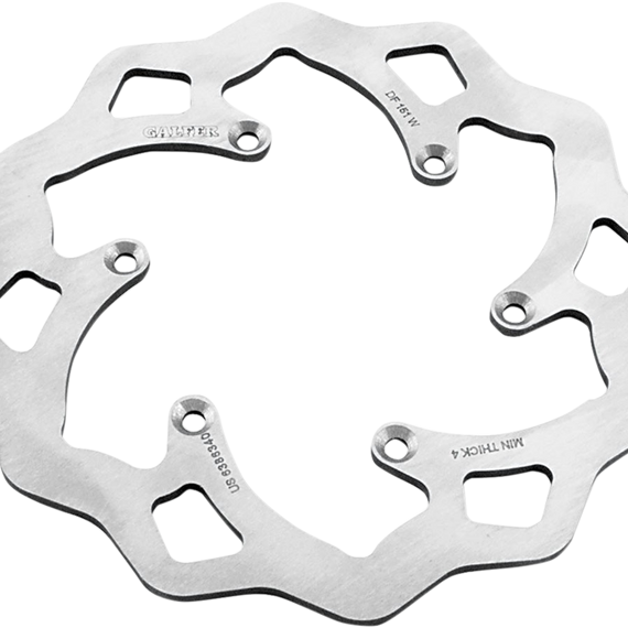 Caracteristicas: The rotor preferred by many top AMA Supercross teams Made of Galfer's unique laser-cut high carbon 420 stainless steel/8 composite Laser cut and double-disc parallel ground to assure perfect flatness and excellent feel Rotors cool as they rotate to lower brake operating temperatures Standard size rotors are direct replacement front and rear brake rotors; do not require any extra parts for install Oversized (270 mm) rotors available for select models (rotor only, do not include brake caliper relocation bracket) Manufactured in Spain