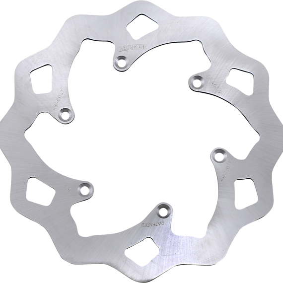 Caracteristicas: The rotor preferred by many top AMA Supercross teams Made of Galfer's unique laser-cut high carbon 420 stainless steel/8 composite Laser cut and double-disc parallel ground to assure perfect flatness and excellent feel Rotors cool as they rotate to lower brake operating temperatures Standard size rotors are direct replacement front and rear brake rotors; do not require any extra parts for install Oversized (270 mm) rotors available for select models (rotor only, do not include brake caliper relocation bracket) Manufactured in Spain