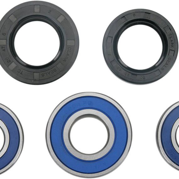 Caracteristicas: Bearing seals are double-lipped rubber that provides superior exclusion of water, dirt and sand with improved grease retention Steel garter spring guarantees constant pressure on the axle shaft, extending the life of the seal Wheel seals are type TC nitrile elastomer, specifically designed to keep out water, dirt and sand Seals have a rubber-coated outside diameter that creates an optimum seal at the hub High-speed, low-drag bearings are EMQ quality Kits include all required bearings and seals