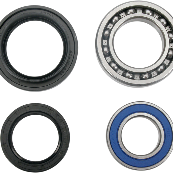 Caracteristicas: Bearing seals are double-lipped rubber that provides superior exclusion of water, dirt and sand with improved grease retention Steel garter spring guarantees constant pressure on the axle shaft, extending the life of the seal Wheel seals are type TC nitrile elastomer, specifically designed to keep out water, dirt and sand Seals have a rubber-coated outside diameter that creates an optimum seal at the hub High-speed, low-drag bearings are EMQ quality Kits include all required bearings and seals
