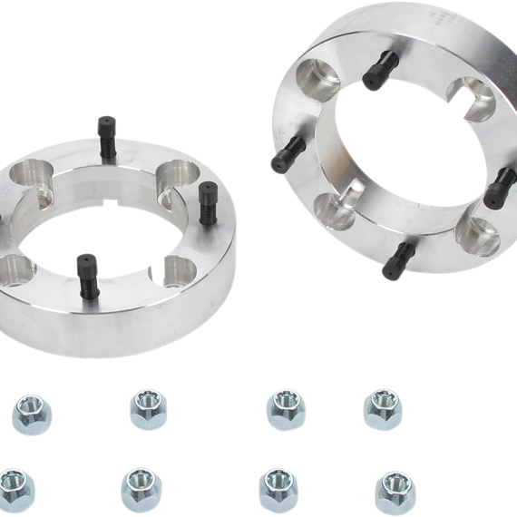 Caracteristicas: Enable use of larger aftermarket tires that won't rub against shocks, struts and/or exhaust Increase stability by moving wheels out slightly from hubs and shocks No OEM studs are required to be removed; stud extenders are not used. Wide Tracs bolt to OEM studs; wheel is then bolted to grade 8 Wide Trac stud (included). Spacers are comparable to automotive-grade wheel adapters; design is the strongest available for ATVs.