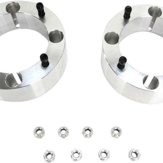 Caracteristicas: Enable use of larger aftermarket tires that won't rub against shocks, struts and/or exhaust Increase stability by moving wheels out slightly from hubs and shocks No OEM studs are required to be removed; stud extenders are not used. Wide Tracs bolt to OEM studs; wheel is then bolted to grade 8 Wide Trac stud (included). Spacers are comparable to automotive-grade wheel adapters; design is the strongest available for ATVs.