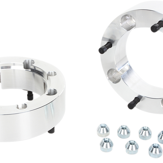 Caracteristicas: Enable use of larger aftermarket tires that won't rub against shocks, struts and/or exhaust Increase stability by moving wheels out slightly from hubs and shocks No OEM studs are required to be removed; stud extenders are not used. Wide Tracs bolt to OEM studs; wheel is then bolted to grade 8 Wide Trac stud (included). Spacers are comparable to automotive-grade wheel adapters; design is the strongest available for ATVs.