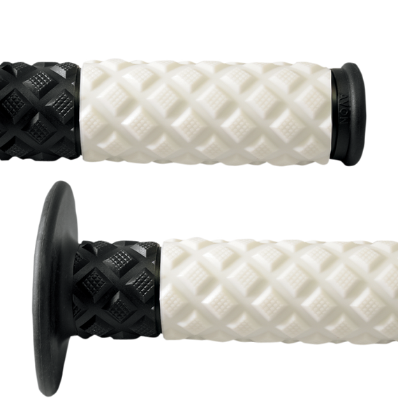 Caracteristicas: Avon developed a system of reinforcing the durability of their MX grips T.R.D. technology (Target Reinforced Durability) allows the grips to be extra durable where necessary, yet soft and tacky where the rider needs more feel Half waffle and diamond pillow styles 4-1/2" L; fit 7/8" bars with throttle side grip Made in the U.S.A.