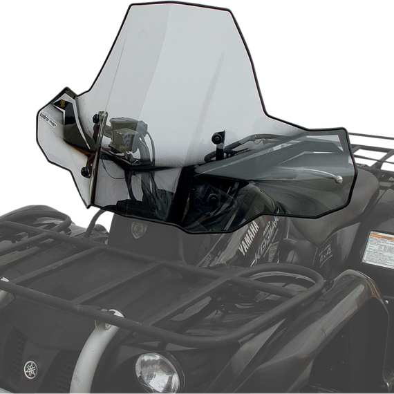 Caracteristicas: Edgy design matches newer ATV styling The addition of ribs and contours give the ProTEK windshield added strength New mounts are more universal than ever, allowing all four shield options (ProTEK, sport shield, with headlight cut-out and without) to fit over 80% of current ATV models; unique two-point mounting system is universal and makes installation quick and easy No need to remove a Cobra ProTEK shield for trailering, as long as ATV faces forward Made of high-quality optical-grade polycarbonate featuring scratch-resistant surface and distortion-free optics For fitment, stand in front of your ATV and if you can see the upsweep part of your handlebars this shield will work on your ATV; the mounting brackets come straight out from the upsweep bars and will work even if you have a headlight pod