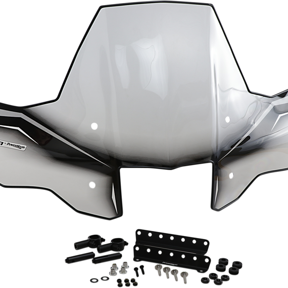 Caracteristicas: Edgy design matches newer ATV styling The addition of ribs and contours give the ProTEK windshield added strength New mounts are more universal than ever, allowing all four shield options (ProTEK, sport shield, with headlight cut-out and without) to fit over 80% of current ATV models; unique two-point mounting system is universal and makes installation quick and easy No need to remove a Cobra ProTEK shield for trailering, as long as ATV faces forward Made of high-quality optical-grade polycarbonate featuring scratch-resistant surface and distortion-free optics For fitment, stand in front of your ATV and if you can see the upsweep part of your handlebars this shield will work on your ATV; the mounting brackets come straight out from the upsweep bars and will work even if you have a headlight pod
