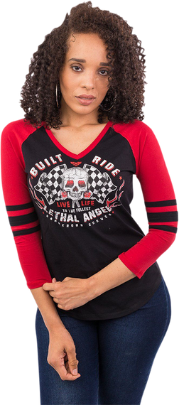 Women's Built to Thrill 3/4 Raglan Sleeve Shirt - Black/Red - Medium
