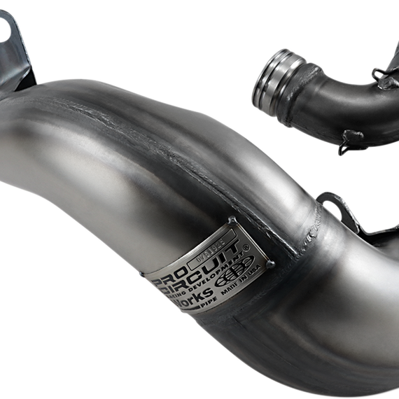 Caracteristicas: The first Pro Circuit pipe built with bare metal finish, giving it a unique style that sets it apart from all other pipes Durable construction conforms to the natural shape of the motorcycle for exceptional fit and performance Reinforced brackets and stingers prevent cracking, and CNC-machined flange provides precise leak-free fit Distinctive design yields increased horsepower and stronger throttle response throughout the entire rpm range Excellent choice for those who want factory-level high-performance features Features include stamped AKDQ high-quality carbon steel construction Hand-welded and pounded seams Embossed nameplate and CNC-machined exhaust flange