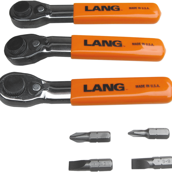 Caracteristicas: Set consists of one 15° off-set wrench, one 15° reverse off-set wrench, one flat wrench, and four bits (sizes #1 and #2 Phillips, 1/4" and 9/32" slotted) Made in the U.S.A.