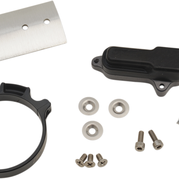 Caracteristicas: Built from 7000 Series aerospace-grade billet aluminum Two-piece system installs without removing fork from bike Sleek design allows the hook to easily glide into receiver for secure engagement No protruding buttons or levers so system won't catch on anything during close contact racing Form-fitting aluminum fork guard drill jig for maximum accuracy Countersinking tool included Lightweight at only 2.4 ounces Made in the U.S.A.
