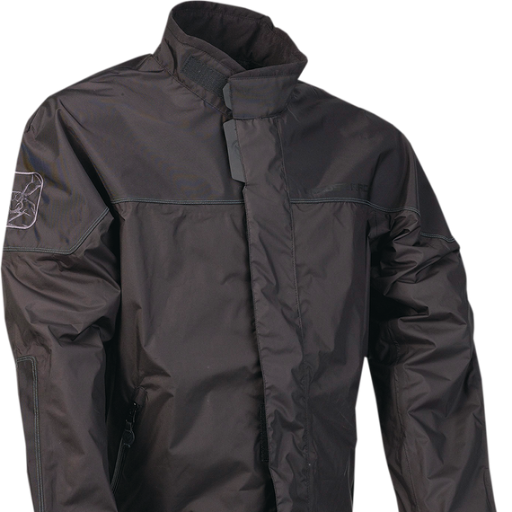 Caracteristicas: Seam sealed laminated 2-layer performance polyester shell is lightweight, waterproof and windproof Mid-weight nylon panels in shoulder and elbow for added durability Fixed rear vent for temperature regulation Two hand pockets and two internal pockets with zippers Internal perforated poly mesh liner wicks moisture and increases comfort Adjustable collar, hem and cuffs