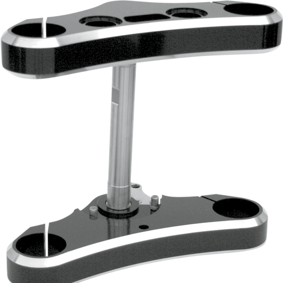 Caracteristicas: Manufactured from billet aluminum Bottom headlight mount Has fork lock capability All hardware is stainless steel Made in the U.S.A. Raked triple trees change the handling characteristics of the motorcycle. Steering geometry must be calculated to determine which degree of rake is most suited for your application. Trees with more than 3° of rake should not be used in stock frame applications.