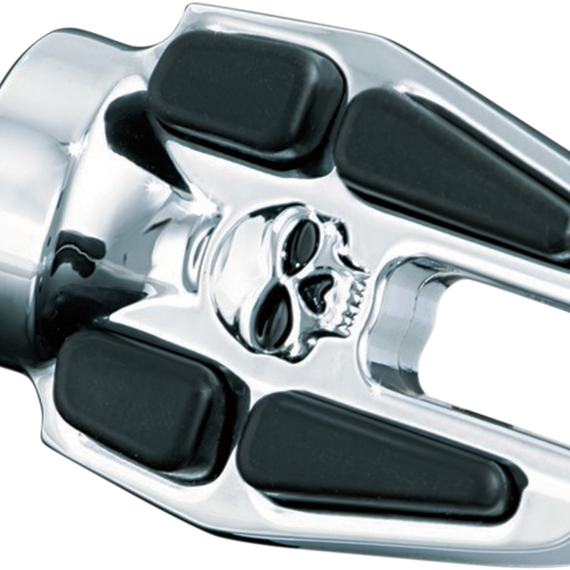 Caracteristicas: Feature a sinister chrome spire point and a skull nestled between the rubber pads Chrome bodies with rubber pads Sturdy, rugged pegs design Shift peg includes mounting hardware