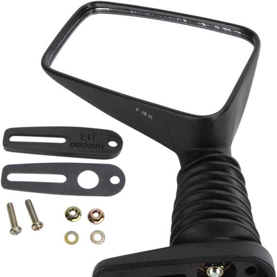 Caracteristicas: Sporty, black fairing mount mirror with adjustable mounting hole 4-1/2" x 3-1/4" lens with a 4" stem 1200R glass radius